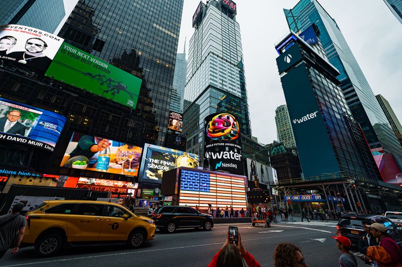 VVater celebrates its World Future Awards win on Times Square — showcasing breakthrough, chemical-free water treatment technology shaping a sustainable future.