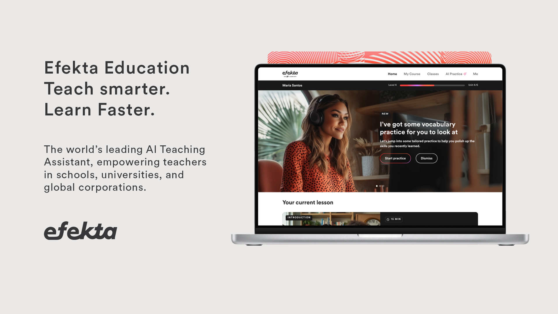 Efekta Education Group has developed the world’s leading AI Teaching Assistant. Empowering teachers in schools, universities, and global corporations and driving improved outcomes for both educators and students at scale.